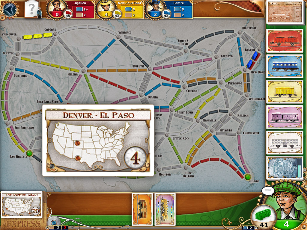 Ticket to Ride offers an amazing array of options. You can play solo, online, over a local network (either Bluetooth or wi-fi) and pass-and-play. It also allows you to download several different expansions. Europe and Switzerland give you new maps to play and the other expansions change the way you play on the USA map. It’s nice playing this on the iPad because you don’t have to worry about holding a hand full of cards and shuffling things around so much.